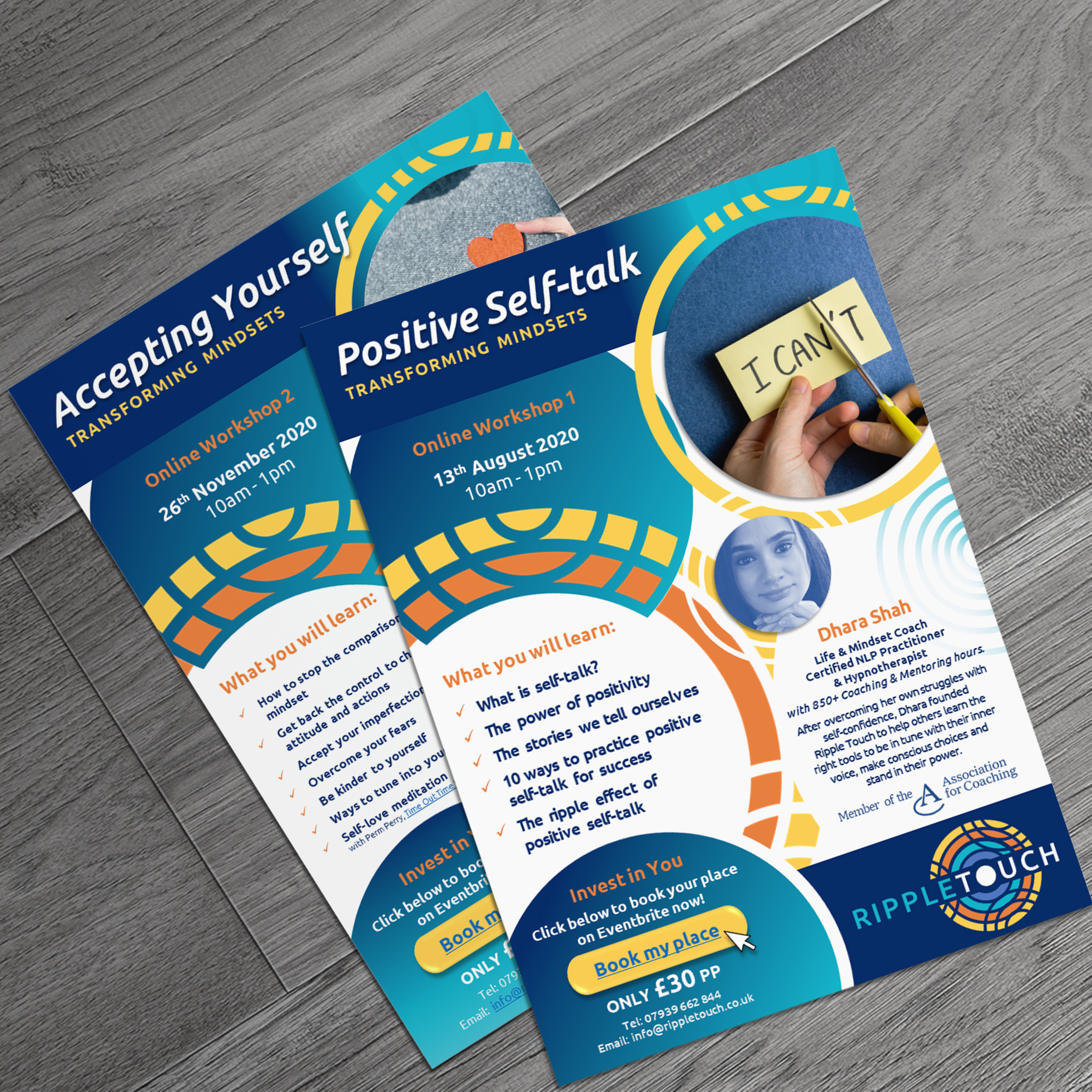 I worked with my client to develop the Ripple Touch brand: the brand personality, defining brand values and creating user personas. From this, I created the visual identity to reflect Ripple Touch – the logo, colour palette, typography, brand imagery and language.