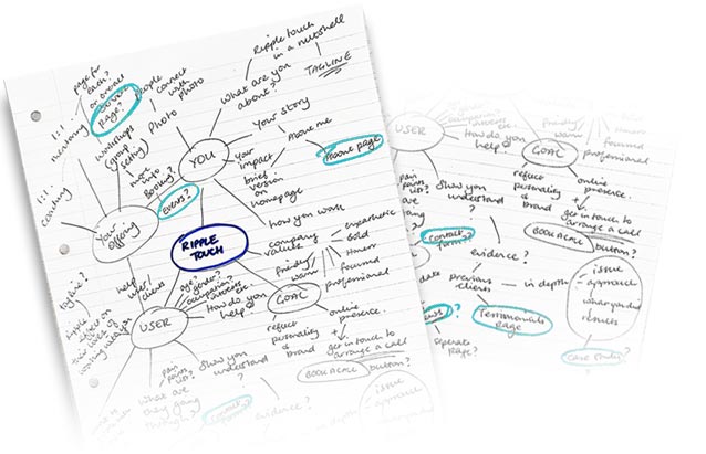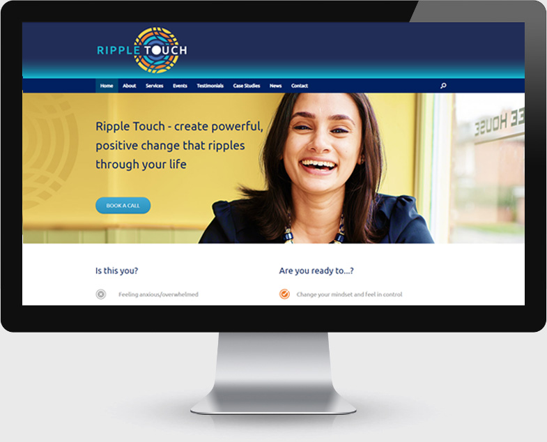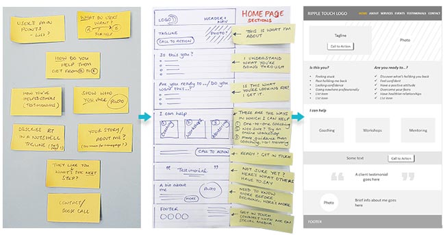 Wireframes were combined with Ripple Touch’s visual identity to form branded webpages (created in WordPress).